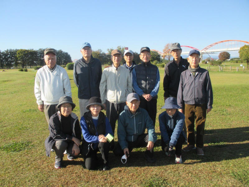 前日の雨も上がりコースは絶好のコンディション、但しプレー後半は北風(赤城降ろし)が強くなり難儀した。結果は野口さんの連続優勝、お試しプレーの柴田さん(伊奈町)が3位の大健闘であった(伊奈町からは少し遠いが、ぜひ入部して欲しい)。