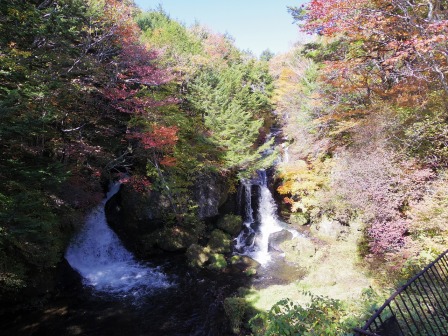 紅葉は竜頭の滝辺りが一番で観光客も多く大変混んでいた。またインバンドで外国人も多く、テレビカメラの前でインタビュアーを受けていた。