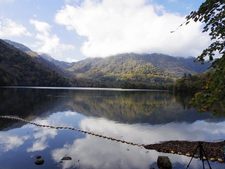 中禅寺湖から男体山、頂上に雲が沸いてきた