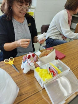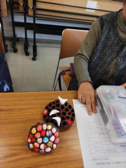 大坂さん蓮の実飾り制作中