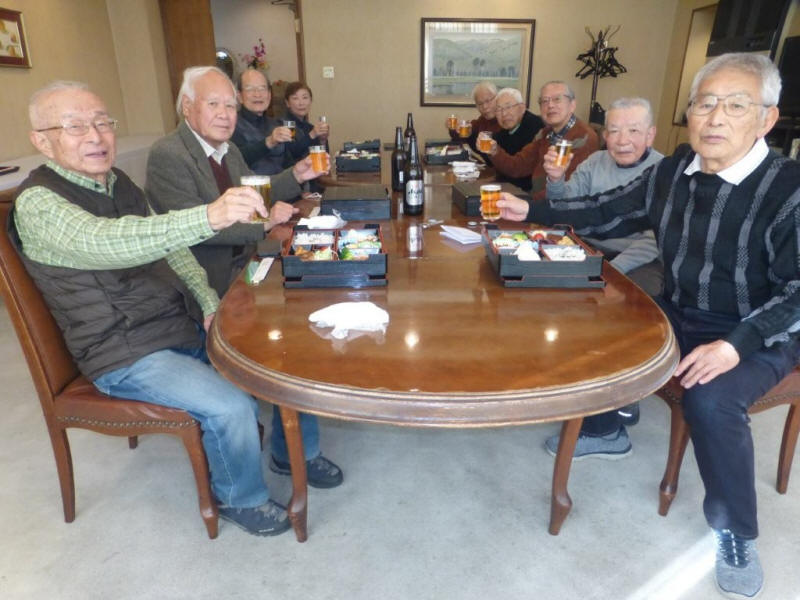 12時30分に開宴し、ビールで乾杯。入会して間もない人もいたので、一人ずつ近況報告を含めて自己紹介をしていただいた。この1年を振り返っての話題も結構出たが、やはり自分の健康に関する話題が多く、お互いをよく知る良い機会となった。賑やかで楽しい一時を送ることができて、お互いの距離が縮まり、近くなったような感じがした。
